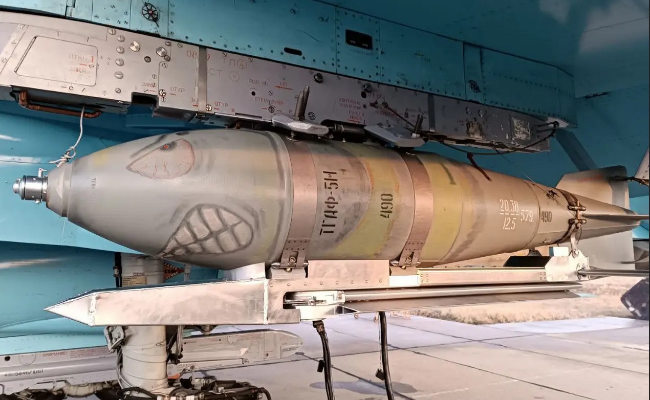 Бомбардировщик Су-34, вооружённый бомбами ФАБ-500 с модулями УМПК-ПД, март 2025 г. Фото Telegram / BMPD