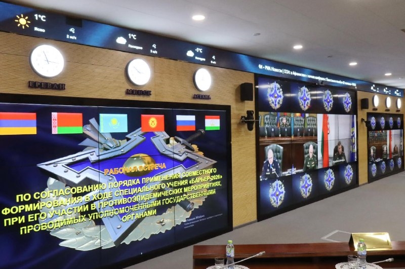 В рамках подготовки к предстоящему специальному учению «Барьер-2026» состоялась рабочая встерча, в ходе которой рассмотрены и обсуждены вопросы подготовки и проведения специального учения, реализации приоритетов по расширению сотрудничества в сфере военной медицины и защиты от биологических угроз, а также организации исследовательской работы в ходе специального учения с формированием РХБ защиты и медицинского обеспечения ОДКБ.