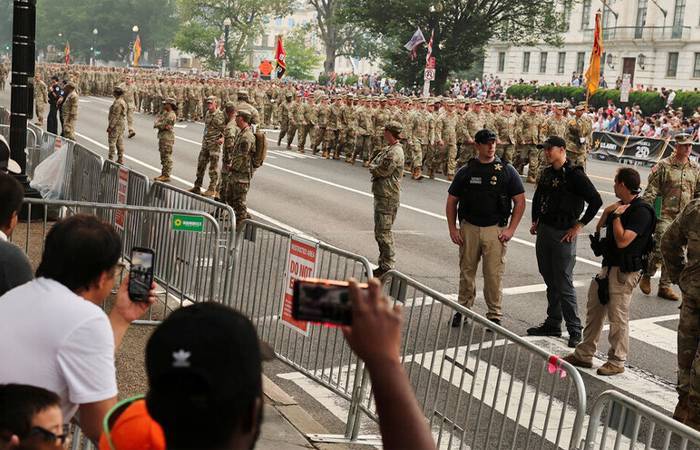 Власти установили ограждения и проверяли всех, кто приближался к месту проведения парада в день рождения президента США Дональда Трампа.