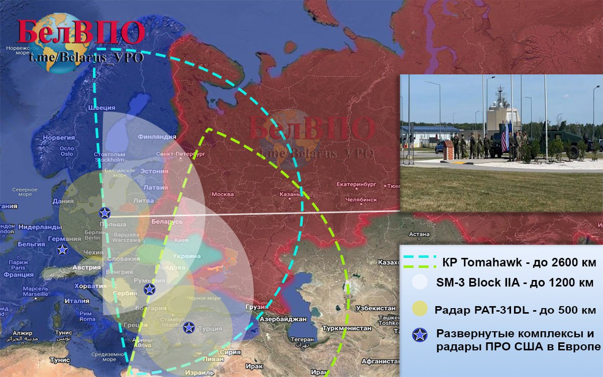 Отметим, что помимо этой американской базы в Польше, в состав Европейской системы ПРО США входит еще одна система Aegis Ashore в Девеселу (Румыния) а также радар раннего предупреждения в Кюречике (Турция) и командный центр в Рамштайне (Германия). Вместе с тем, морская версия системы Aegis установлена на эсминцах ВМС США, размещенных на военно-морской базе Рота в Испании.
