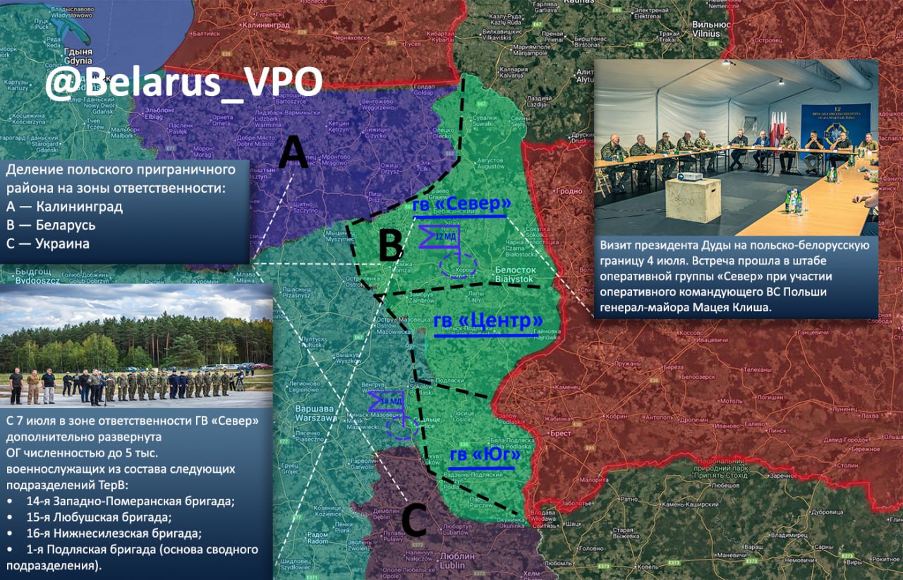 Между тем, необходимо отметить визит президента Дуды на польско-белорусскую границу 4 июля. Встреча прошла в штабе оперативной группы «Север» при участии оперативного командующего ВС Польши генерал-майора Мацея Клиша. Напомним, одной из основных его задач является планирование и координация именно мобилизационных мероприятий, включая подготовку резервистов. Генерал Клиш активно продвигает идею возвращения всеобщей воинской повинности и считает необходимым подготовить до 7 млн. резервистов по примеру Финляндии.