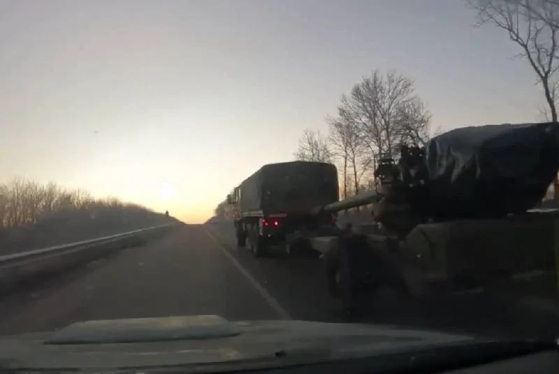 На кадрах можно наблюдать, как одну из 6 недавно переданных гаубиц буксирует тягач Renault TRM 10000.
